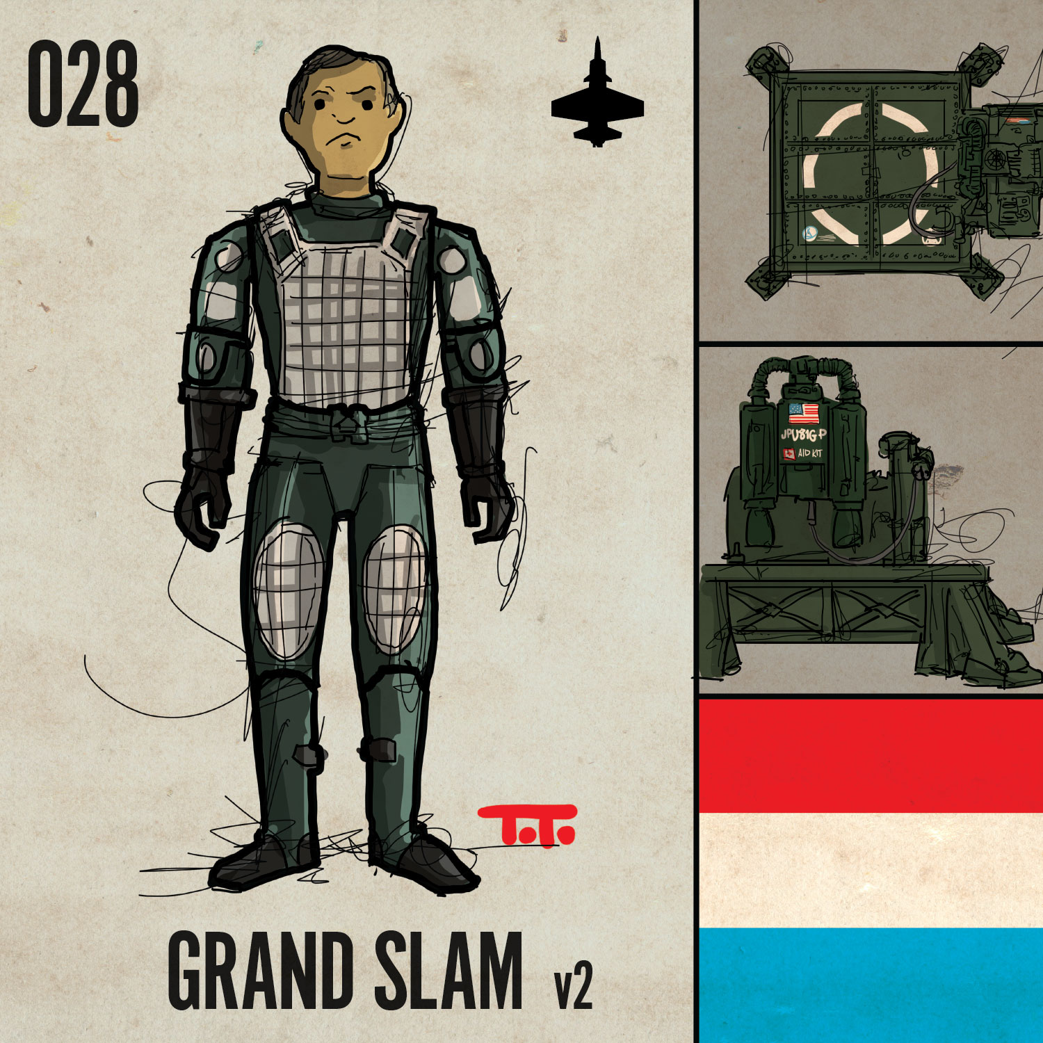 Grand Slam version 2 featured SILVER padding instead of RED, as he was packaged in Series 1 with the H.A.L. This time he came packaged with a jet pack and launch pad. That’s right a JET PACK. It was specifically the “JUMP Jet Pack.” JUMP = Jet Mobile Propulsion Unit.