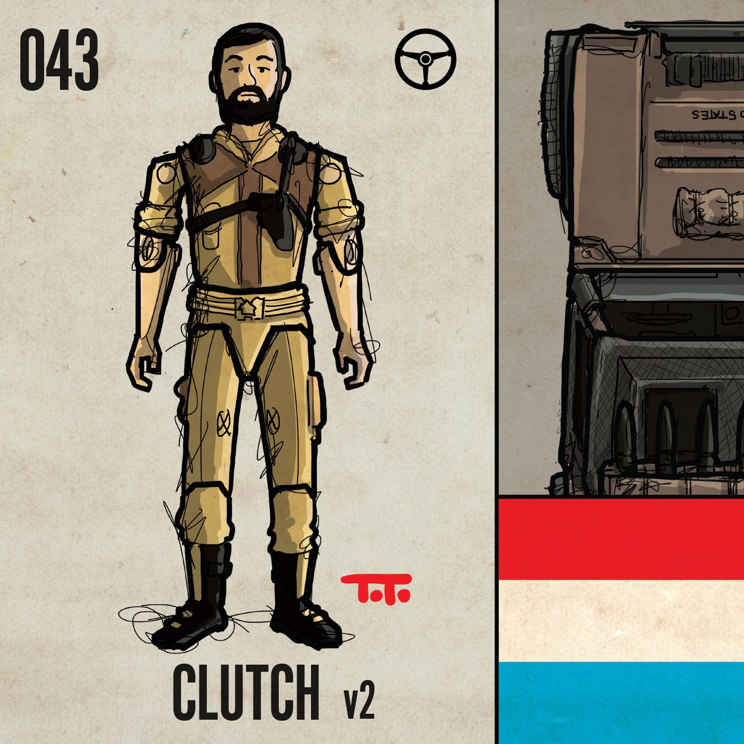 I never personally had this guy or his vehicle (art forthcoming) but I can note that he certainly had the best chest for a vest in the west! (and also the biggest helmet on record in the free world)
