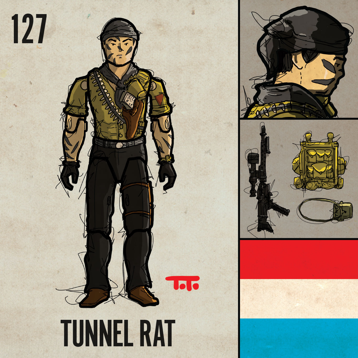 Here’s our jungle pal Recondo. According to his file card he’s happiest when he’s out in the jungle hauled a rucksack and “sweating through his cammies.” :O
