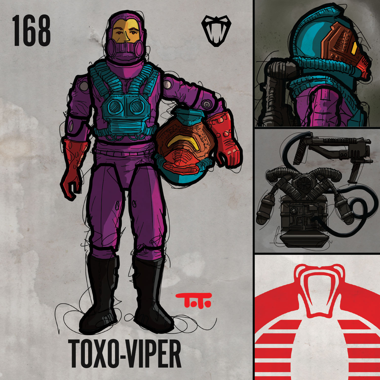 Giant helmet, wild colours, giant helmet, and wacky gear. I give you: The Toxo-Viper. Which, incidentally, adds another figure to my favourite category: VIPERS. Sort ‘em right here on the site by clicking the VIPER button!
